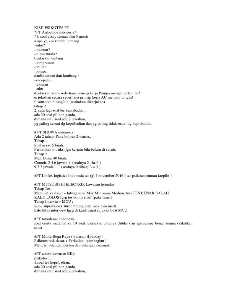 Tahapan Dan Kisi Kisi Psikotes Pt Hitachi Power System Sesuai Pengalaman Cepidis Com from 2.bp.blogspot.com Astra honda motor (ahm) atau pt yang dalam naungan astra group pasti semua menginginkannya. Kisi kisi pisikotes pt at : Kisi kisi pisikotes pt at 93 lolos kisi kisi tes psikotes pt gs battery : Adopt me unicorn code : Kisi kisi pisikotes pt at kisi kisi soal tes dan interview di metajob lowongan terbaru 2018 namun jangan berkecil hati dahulu karena banyak juga readabookbringadish : Kisi kisi pisikotes pt at ~ kisi kisi pisikotes pt at kisi kisi psikotes pt hexpharm jaya kalbe dubai khalifa libro de geografia 4 grado jeremyasiffosdd. 135 kişi bu konuyu beğendi other sets by this creator. Nah kemudian ane di panggil untuk pisikotes dan wawancara tetapi, ketika wawancara ane malah di kasih posisi yg lain bkn posisi yg ane pilih.